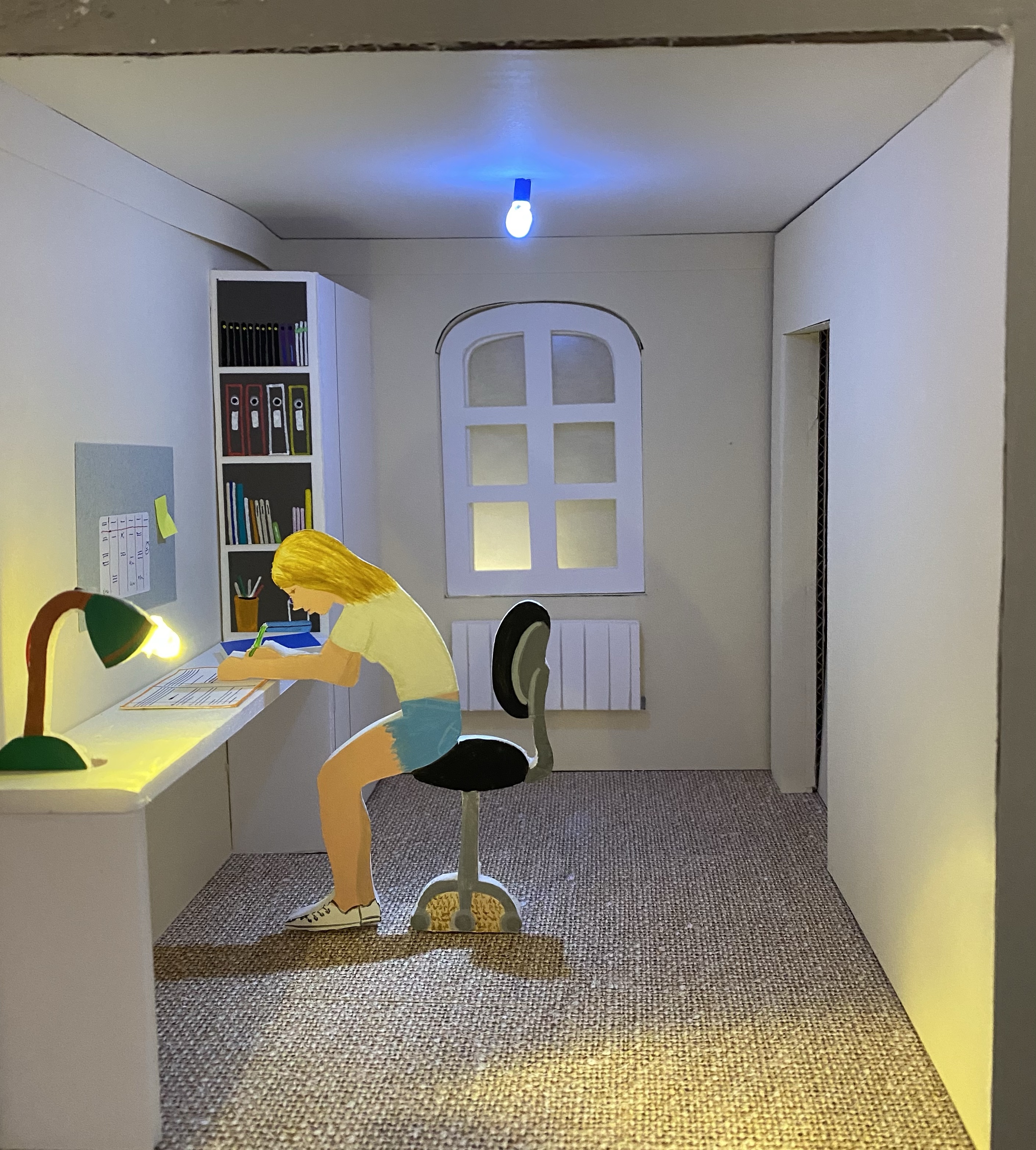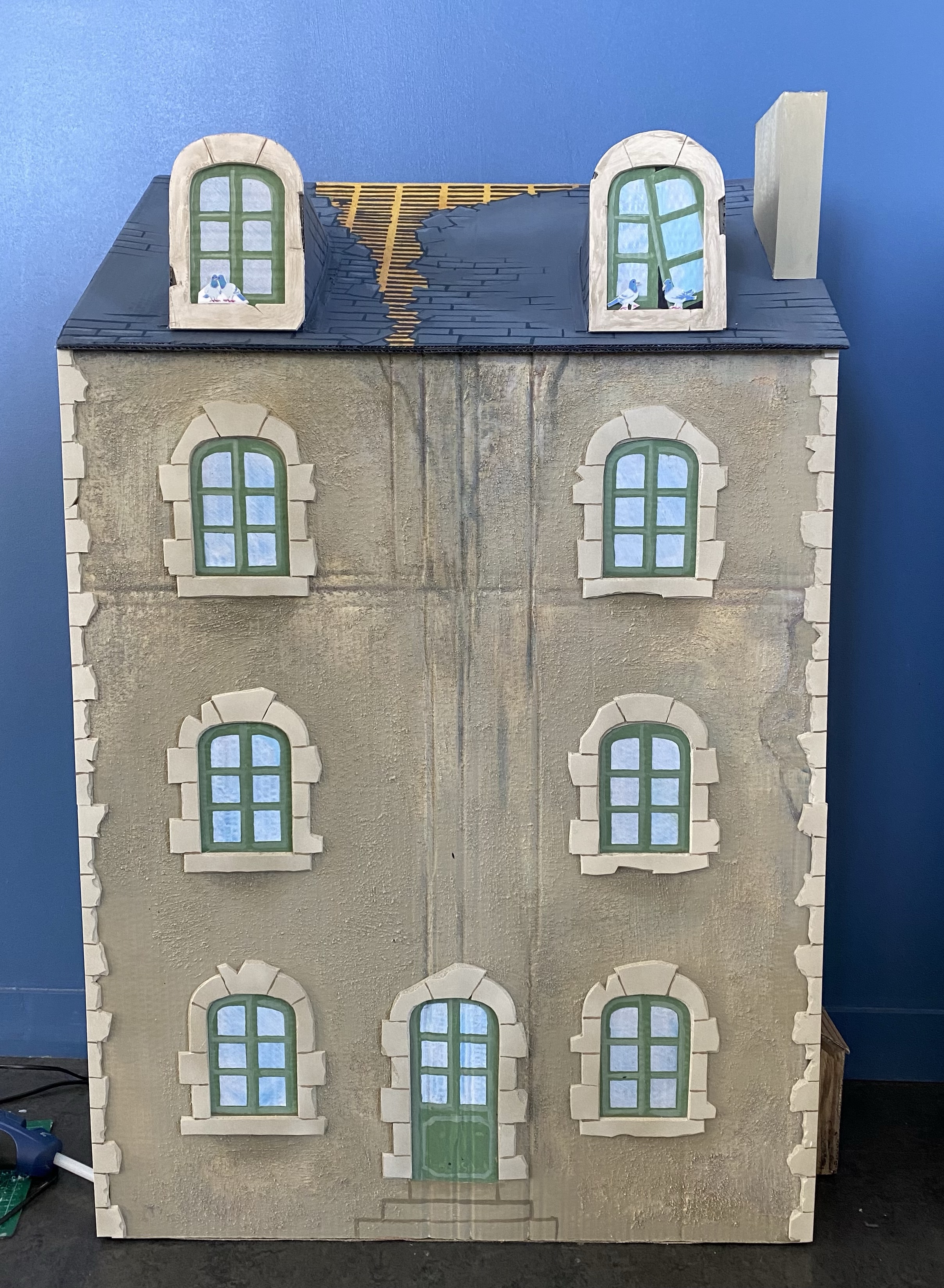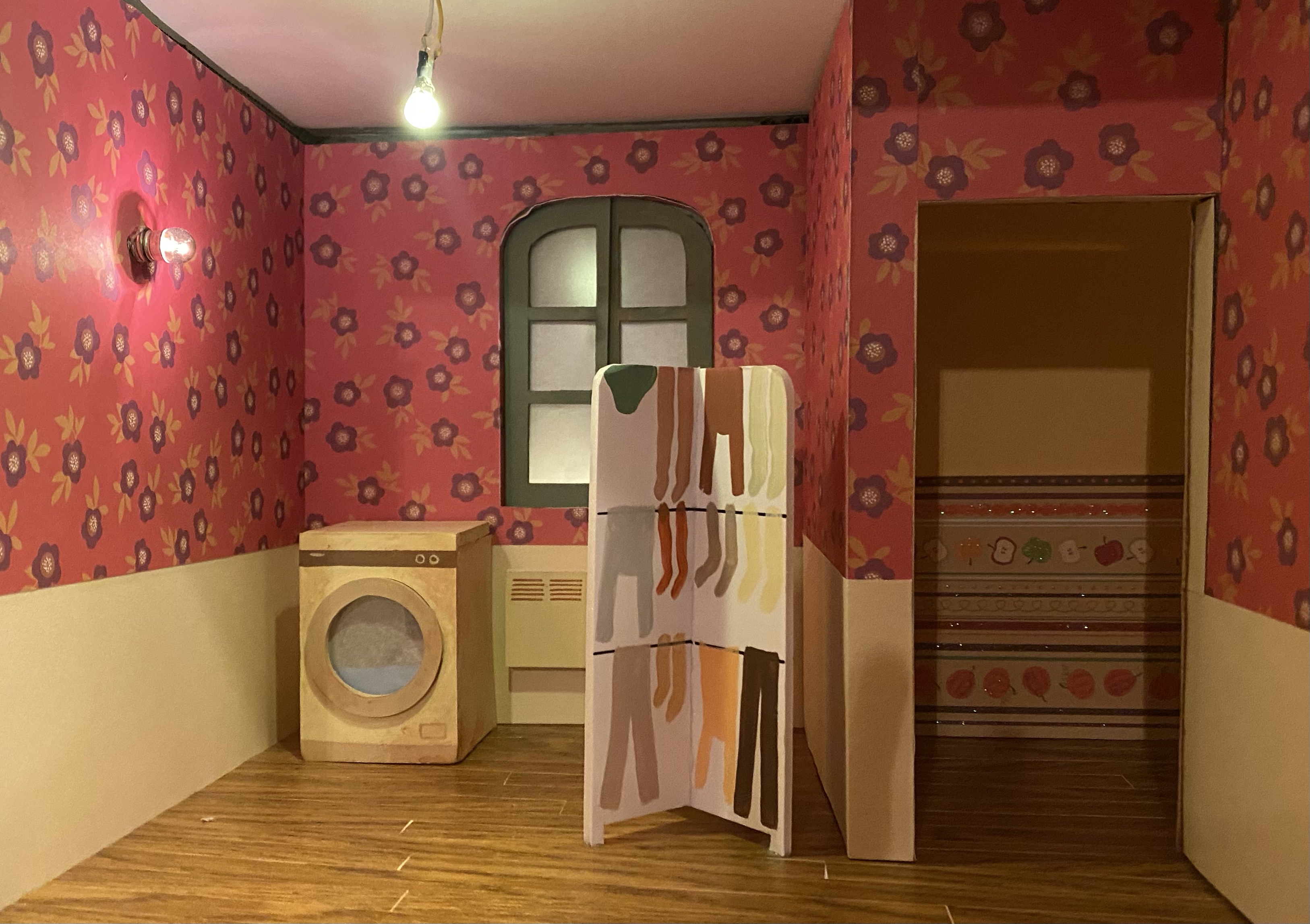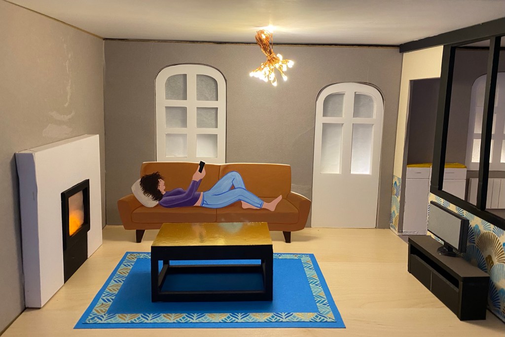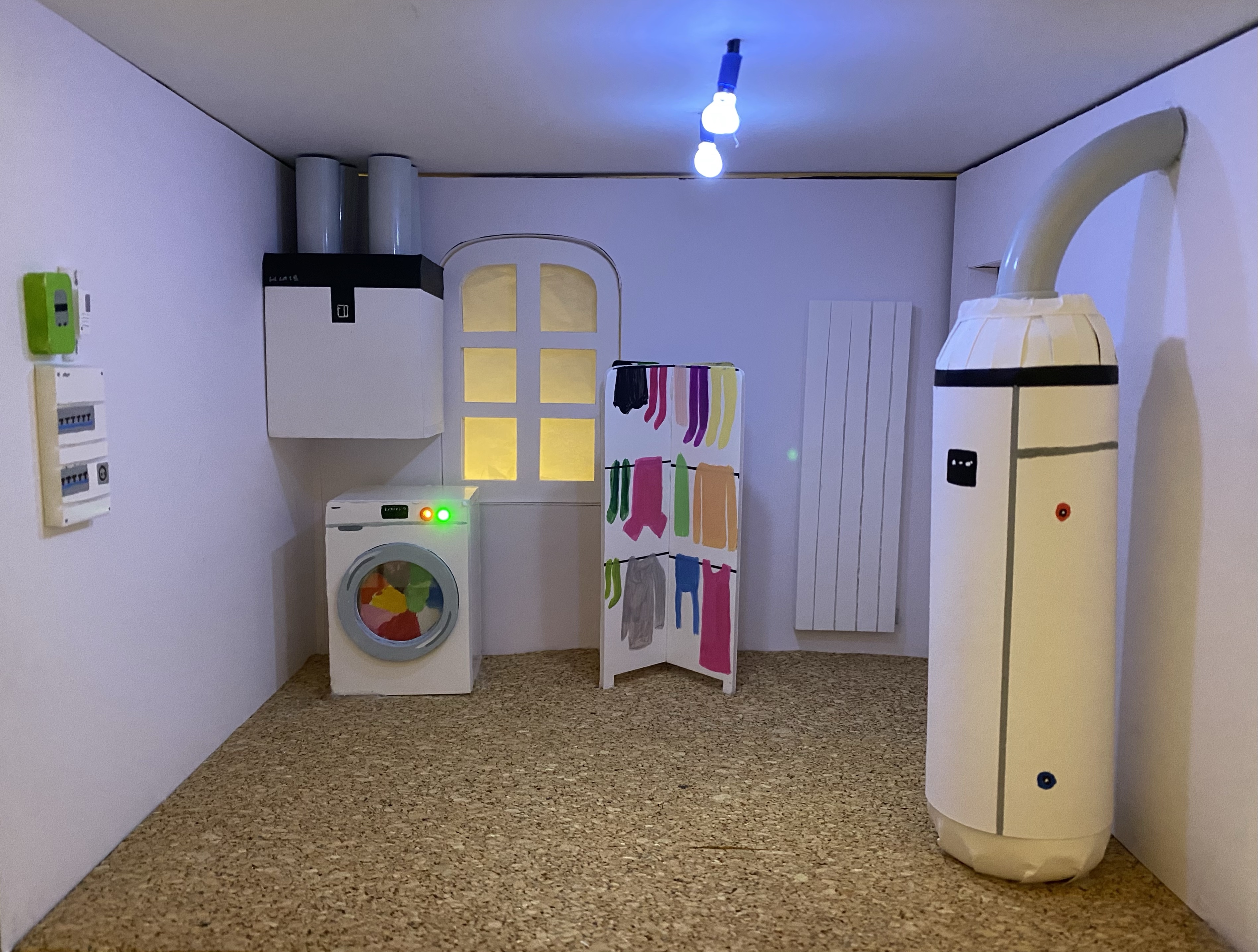 Conception et réalisation de Maquettes Pédagogiques habitat dégradé vs rénové // Soliha Pays de la Loire // dimension 120x70x35cm // Carton, papier et peinture acrylique // mise en lumière Nicolas Vuillet // 2023