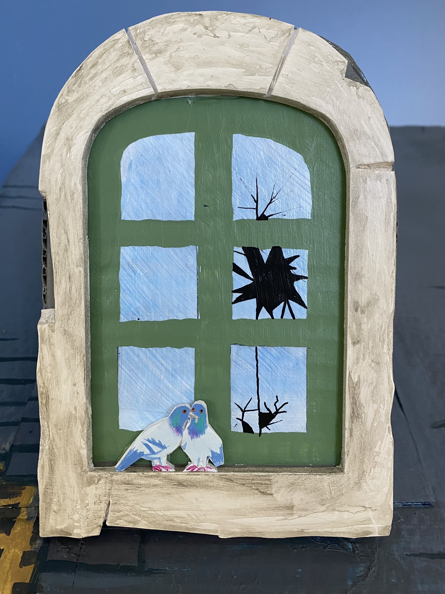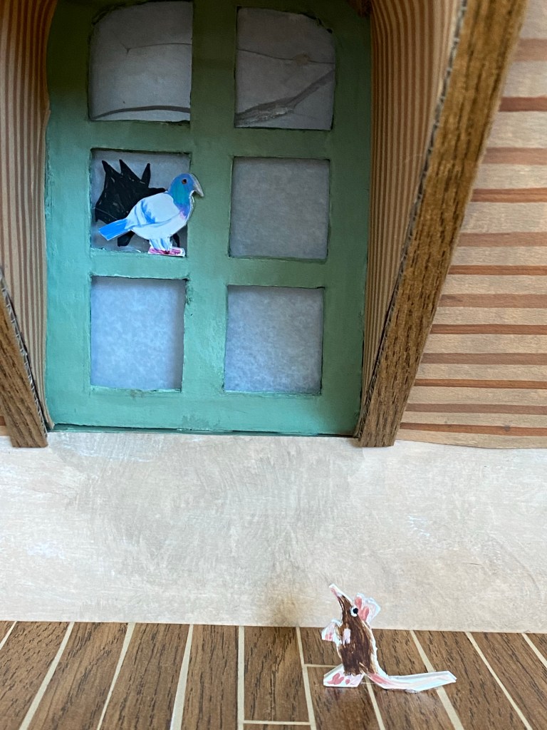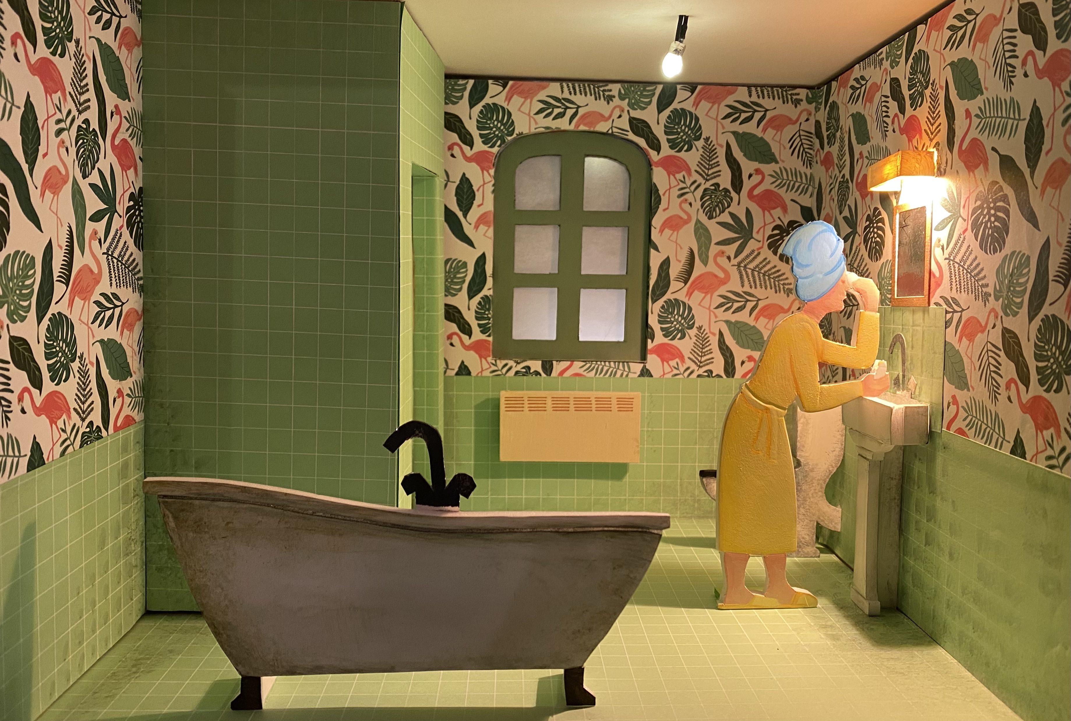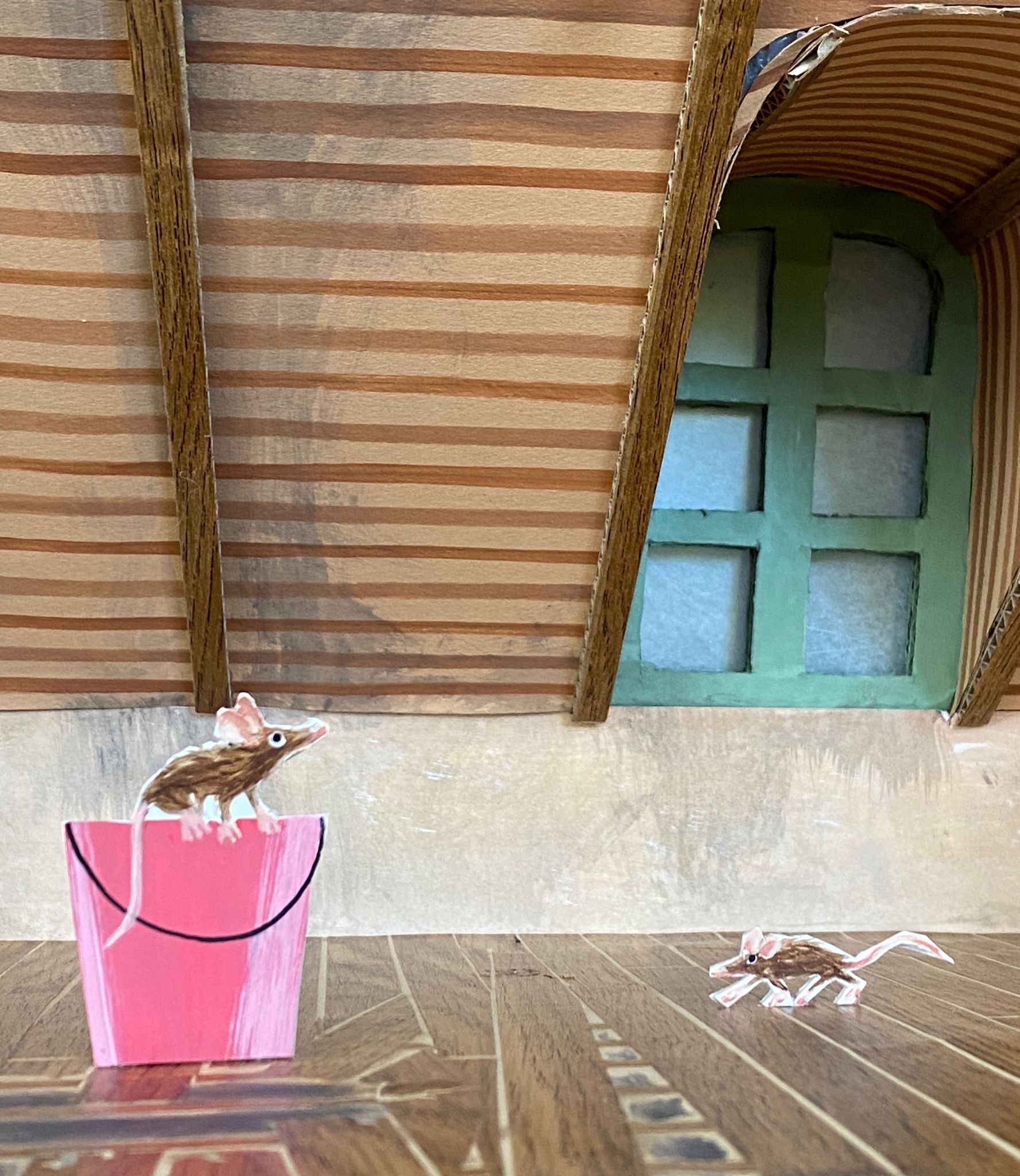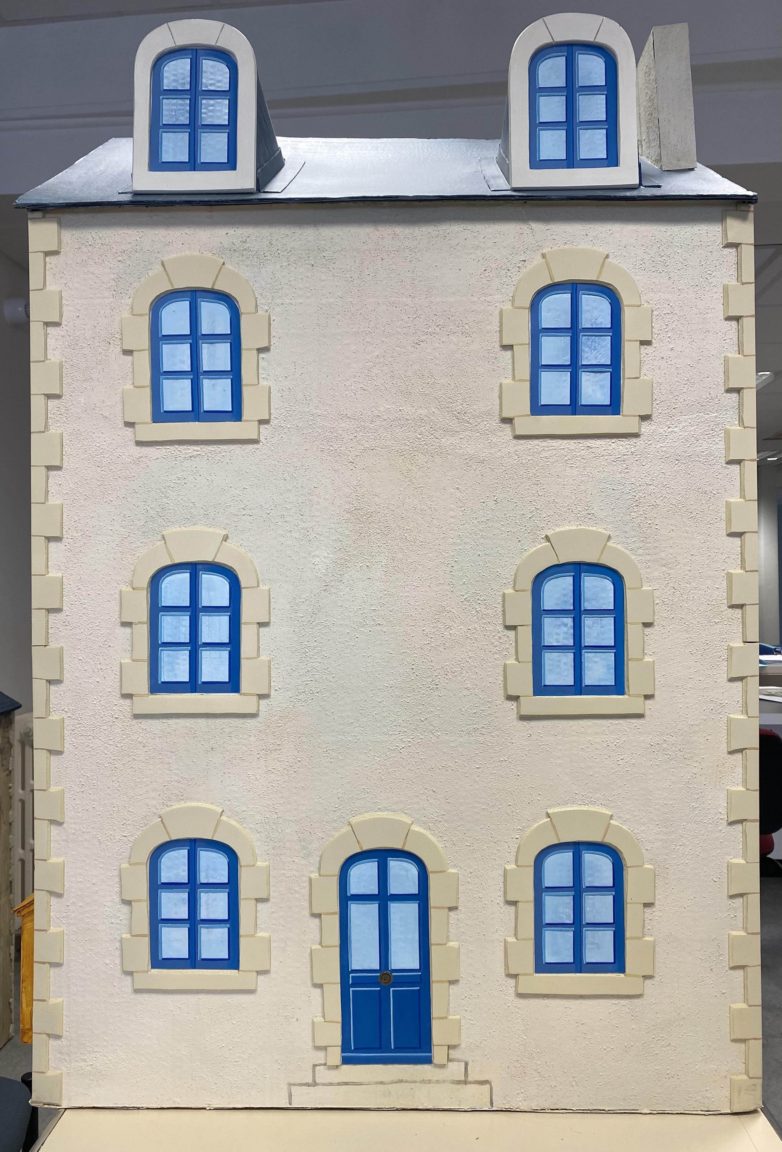 Conception et réalisation de Maquettes Pédagogiques habitat dégradé vs rénové // Soliha Pays de la Loire // dimension 120x70x35cm // Carton, papier et peinture acrylique // mise en lumière Nicolas Vuillet // 2023